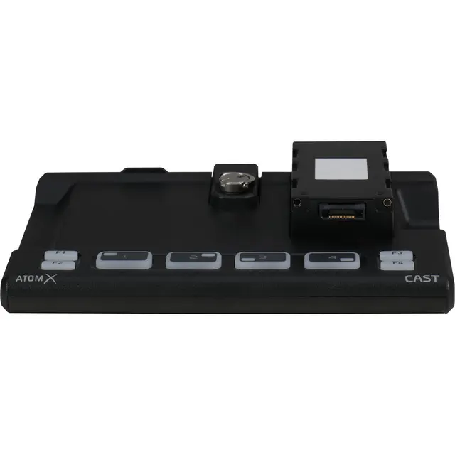CAST er spesielt designet for å monteres på baksiden av Ninja V/V+ -skjermen, og den har fire HDMI-innganger som støtter en miks av forskjellige oppløsninger opp til 1080p60. Skjermen kan vise ett enkelt bilde, bilde-i-bilde eller 4Up-modus, og du kan også legge til logoer og grafiske overlegg. Den kan sende program-, forhåndsvisning-, bilde-i-bilde- og 4Up-skjermer til HDMI-utgangen. Du kan velge kilden for skjerm/utgang ved hjelp av de fire kildeknappene, eller du kan velge kilden ved hjelp av skjermens berøringsskjerm. Det er også fire programmerbare funksjonsknapper for å utføre spesifikke snarveier.