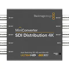 Blackmagic Mini Converter SDI-distribusjon 4K lar deg distribuere et enkeltlink SD / HD / 3G / 6G-SDI-signal til åtte SDI-enheter samtidig. Den registrerer automatisk inngangssignaltypen, re-klokker den, og de åtte utgangene samsvarer automatisk med SDI-inngangsformatet. Med en kompakt formfaktor og brukervennlige kontroller, er Mini Converter ideell for en rekke kringkasting, postproduksjon og profesjonelle AV-applikasjoner.