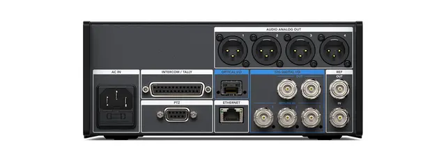 Toveis fiberoptisk grensesnitt for Blackmagic Camera Fiber Converter. Kan kommunisere med en Camera Fiber Converter opptil 4km unna og kan implementeres i OB biler, TV-studioer og store spillesteder for å bære video, lyd, kommunikasjon og kontrollsignaler over en enkelt SMPTE fiberforbindelse. På bakpanelet er SDI-tilkoblinger for HD- eller UHD 4K-video og HD-returfeeder tilgjengelige. Lyden bryter ut fra de fire XLR-tilkoblingene. Frontpanelet har en SMPTE-fiberkontakt til Camera Fiber Converter og en 5-tommers skjerm.