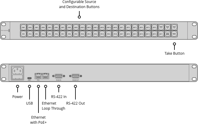 Når du vil ha den raskeste rutingen du kan få, lar Videohub Smart Control Pro deg rute med et enkelt knappetrykk. Programmer hver knapp for et enkelt ruters krysspunkt. Du kan programmere for å ha flere destinasjoner.