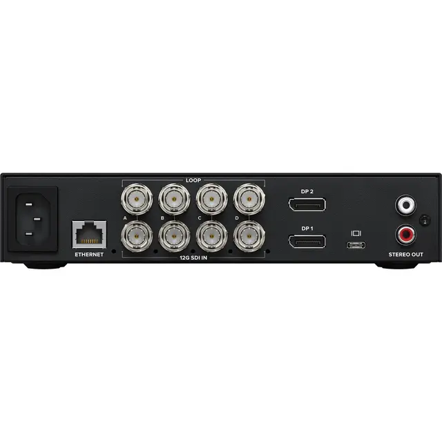 Blackmagic Design gir en avansert 8K monitorering. DisplayPort-utgangene gjør det mulig å bruke pro-skjermer som Apple Pro Display XDR som en del av installasjonsmonitoren eller etterproduksjonen. De fire 12G-SDI-inngangene støtter 4K-signaler uavhengig eller et 8K-inngangssignal sammen, enten DCI 8K eller 8K-video delt inn i fire UHD-signaler. Den kan bruke tredjeparts kalibreringssonder som SpectraCal C6, X-Rite i1 Display Pro eller Klein K10-A-sonden for å justere tilkoblede skjermer nøyaktig for nøyaktig farge. Den innebygde LCD-skjermen med farger viser ikke bare videobildet, men den kan også vise to omfanger på skjermen valgt fra WFM, Parade, Vector og Histogram.