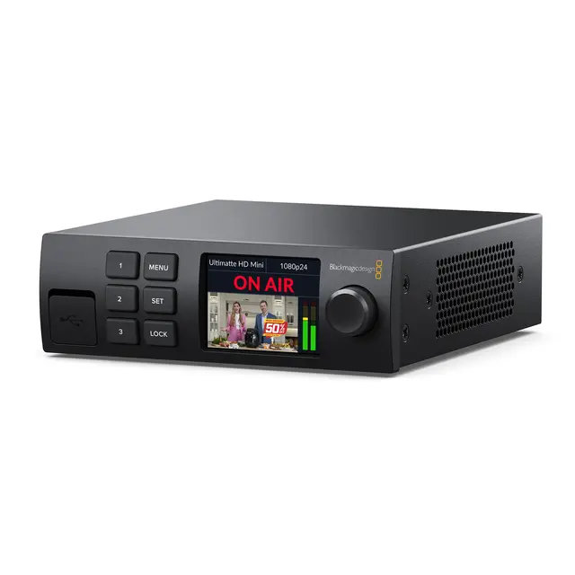Blackmagic Design Ultimatte 12 HD Mini er en avansert sanntids-keyer, designet for å lage neste generasjons virtuelle sett og mer med forbrukerkameraer. HDMI-tilkoblingene er perfekte for bruk med Blackmagic Studio-kameraer, Pocket Cinema-kameraer og ATEM Mini live produksjons-switchere. I tillegg er det en massiv 6 GB frame store for realistiske virtuelle sett med faste kameraer fra forhåndsrenderte stillbilder. Ultimatte 12 HD Mini har kringkastingskvalitetsalgoritmer og fargevitenskap for å levere fotorealistiske kompositter.