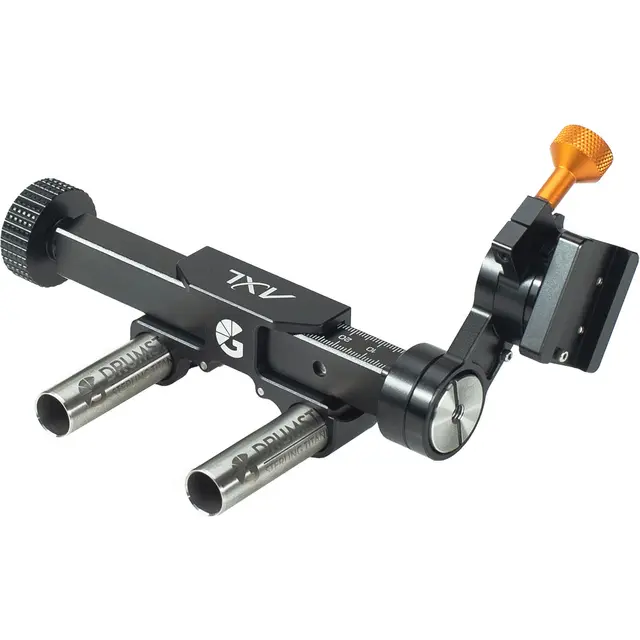 The mount features 3-axis adjustment, and the extension arm allows you to rotate the mount while the box-style crossbar secures the assembly so it doesn't flop down or move once it's set in place within the carriage mount. The carriage mount allows you to mount the entire assembly onto a standard 15mm LWS rod system. The mounting arm features a quick release mechanism to quickly mount and unmount your ARRI EVF. The mount components are made from durable CNC-machined, hard-anodized aluminum, and the included 3" Drumstix rods are made from lightweight titanium. Optional quick release adapters are available for different types of monitors and EVFs.