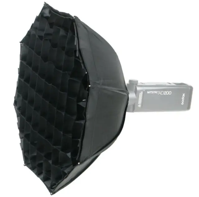 Godox Multifunctional Softbox er egnet for portrettfotografering og den har en diameter på ca 45cm. Innsiden av denne softboxen er dekket med sølvreflekterende materiale som sikrer høy lyseffekt og god refleksjon. Den medfølgende Tøy-Griden sørger for at blitslyset er bedre rettet.
