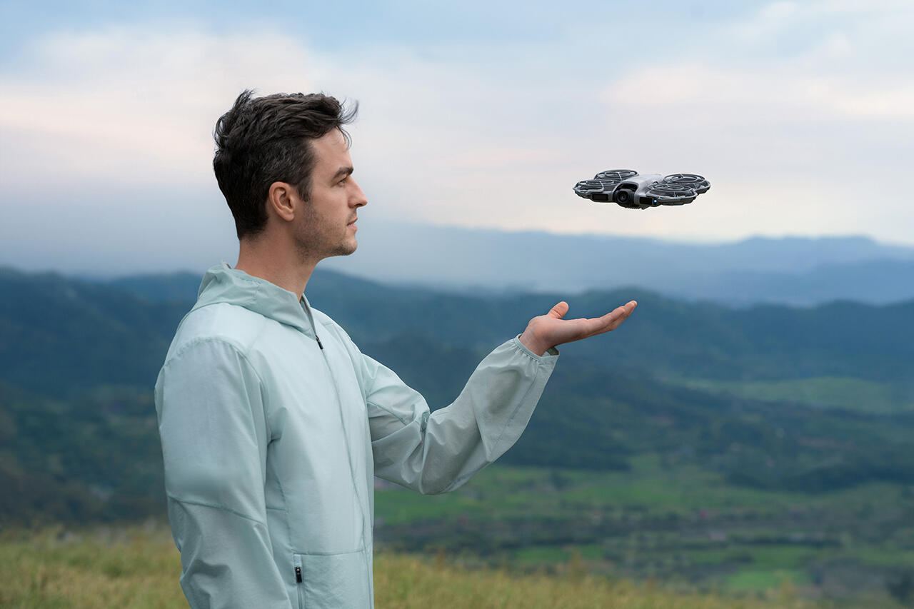 Med Palm Takeoff tar DJI Neo 2 av rett fra hånden din. Dette gjør den ideell for solofilmere, vloggere og influensere som ønsker å starte opptak uten fjernkontroll eller ved hjelp fra andre. Med Palm Landing avslutter du like enkelt.