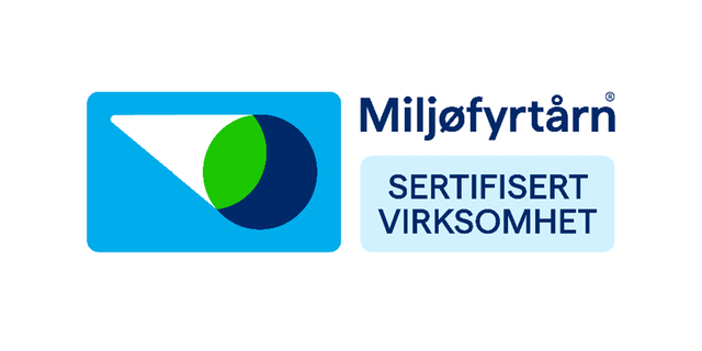 Vi ønsker å bidra til et mer bærekraftig samfunn og tar derfor ansvar for bærekraft i egen organisasjon. En viktig del av arbeidet er å være Miljøfyrtårn-sertifisert. Det betyr at vi har etablert et miljøledelsessystem som styrer klima- og miljøarbeidet og hjelper oss med å oppnå kontinuerlig forbedring.