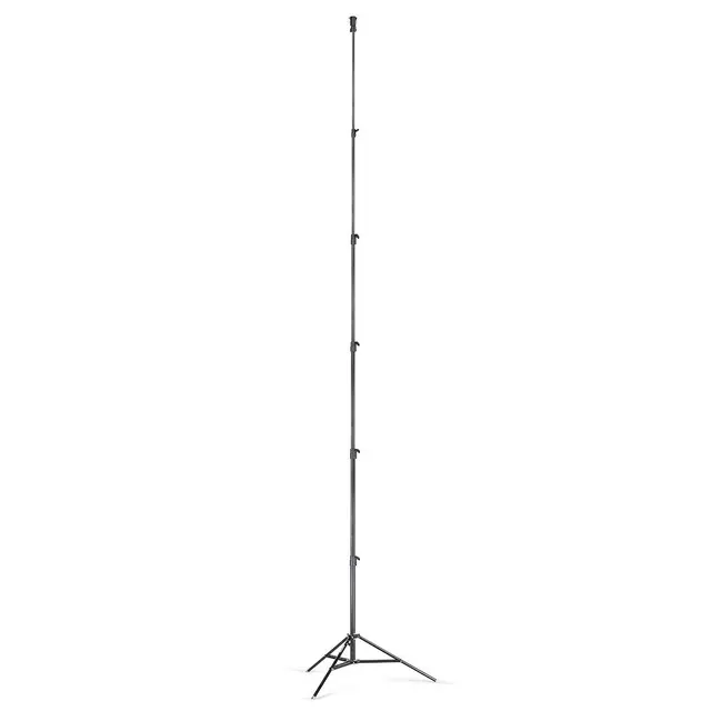 Ekstremt høyt lysstativ. Super High Stand. Dette må-ha-stativet er ideelt for enhver fotograf som ønsker total kreativ fleksibilitet, selv i de mest utfordrende miljøene. Hvis du trenger å nå ekstra høye høyder, vil dette Super High Stand gi deg alle verktøyene til å gjøre nettopp det. Det er en av de høyeste stativene på markedet, pluss at den er fullpakket med brukervennlige funksjoner, og den er laget etter Italias verdensledende kvalitetsstandarder.