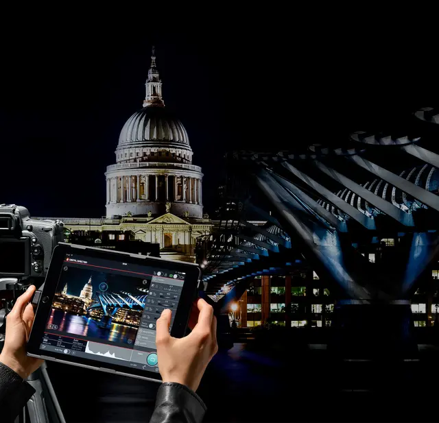 - Fjernfotografering og kontroll av alle viktige parametere og fokuspunkt på Canon og Nikon speilreflekskameraer i sanntid.