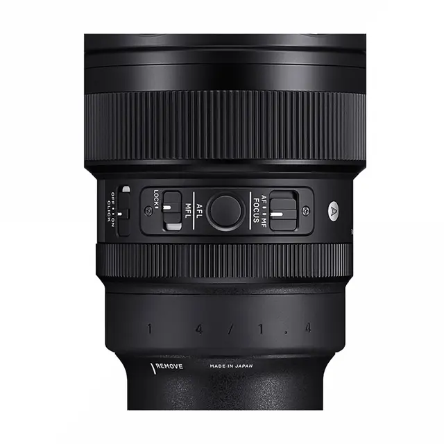Inkludert et avtagbart stativfeste, kompatibelt med Arca-Swiss-type. 14mm F1.4 DG DN | Art kan settes på stativ for økt stabilitet ved fotografering, spesielt siden objektivet er tyngre i fronten. Formen på objektivet er laget slik at objektiv-varmer ikke kommer i veien i bildet. - MFL (Manual Focus Lock) Bryter