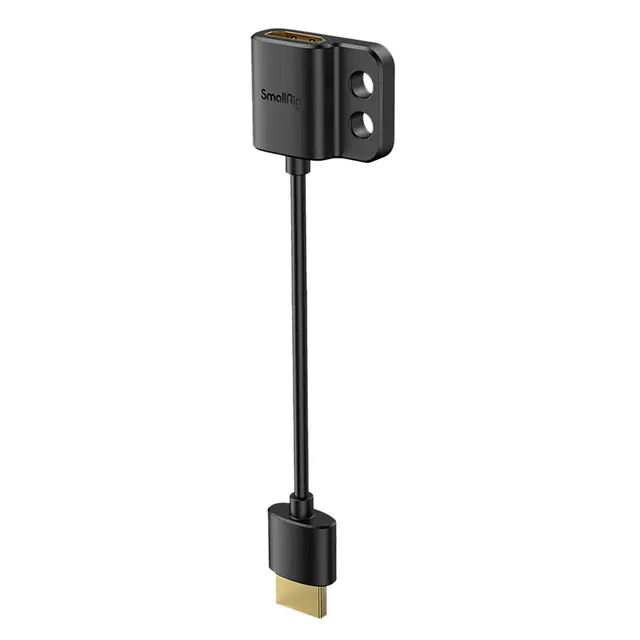 HDMI 2.0-versjonen støtter oppløsning opp til 4K@60Hz og er bakoverkompatibel. Den har to ¼-20"-skruer for å feste den hunn-delen til siden av kameraburet eller L-braketten for å beskytte kameraets HDMI-port og sikre en mer stabil tilkobling. Ultratynn design med en 3,6 mm ytre diameter gjør den tynnere og mykere enn en vanlig HDMI-kabel. Det er en perfekt adapterkabel som brukes til å endre kameraets HDMI-port til en mer ønsket retning etter behov.