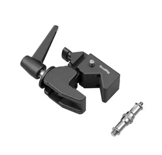 SmallRig Crab-Shaped Clamp 3755 er laget av aluminiumslegering og rustfritt stål av flykvalitet, CNC-maskinert og skåret for å øke stabiliteten og holdbarheten. Den har skjelett- og krabbekroklemme design med ekstra kraftig klemkraft samt bred kompatibilitet med 1/4"-20 gjengede hull, 3/8" -16 gjengede hull og ARRI 3/8"-16 lokaliseringshull. Klemmen, som har en åpningsdiameter på 13 mm og overflate med en maksimal tykkelse på 65 mm, kan raskt feste kameraer, skjermer, LED-lys, etc. til runde rør, bord, styre, stativ og stabilisator håndholdte ringer. I tillegg gir innebygde puter beskyttelse og klemstabilitet.