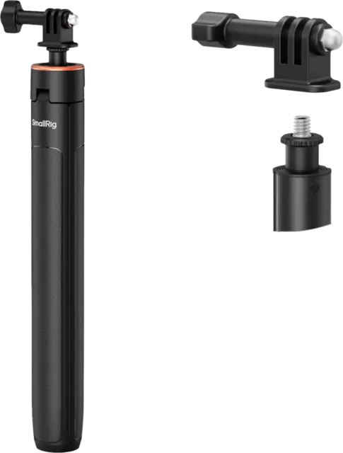 SmallRig VT-08-Selphi Stick, med feste for actionkameraer er ett mini stativ stativ med trinnløs lengdejustering fra 29 til 150 cm (11,4 til 59 tommer). Stativtoppen er utstyrt med en 1/4"-20 skrue og en adapter for actionkamerafeste. Dette sikrer den bred kompatibilitet med speilløse kameraer, actionkameraer og mini actionkameraer. Den har plass til ulike filmingsscenarier og gir innholdsskapere en pålitelig og allsidig løsning for deres visuelle historiefortelling.