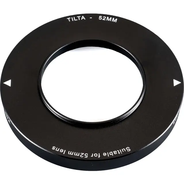 Denne Tilta 52mm adapterringen lar deg montere Tilta Mini Clamp-On Matte Box på objektiver som har en 52mm frontdiameter. Adapterringen skrues på fronten av linsen, og matte boksen klemmes deretter på adapterringen. Tommelfingerhjulet på siden av matte boksen brukes til å feste matte boksen ordentlig til adapterringen.