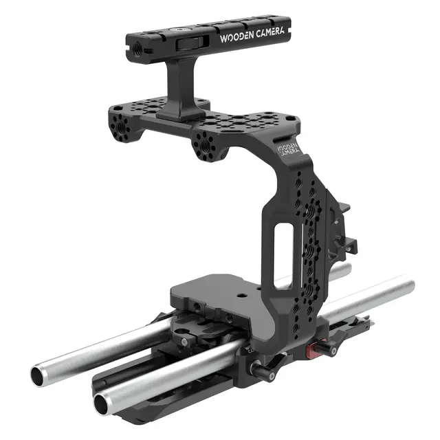 Blackmagic Pocket Cinema Camera 6K G2/6K Pro Unified Accessory Kit (Advanced) fra Wooden Camera er en kamerastøttepakke designet for Blackmagic Pocket Cinema Camera 6K G2 og 6K Pro-kameraene. BMPCC 6K Pro-tilbehørspakken inneholder Blackmagic Pocket Cinema Camera 6K Pro Camera Cage - et formtilpasset kamerabur for sikker montering av kameratilbehør, det kompakte topphåndtaket (3/8-16), LW 15 mm baseplate for BMPCC6K Pro - en grunnplate med hurtigutløser som holder to 15 mm stenger i riktig linsehøyde, Safety Dovetail (8") som kobles til ARRI dovetail-sporet på bunnen av Unified Baseplate, og to 15 mm stenger (12").